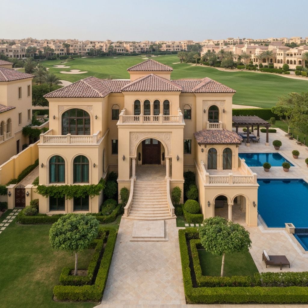 Exceptional mansion in Emirates Hills with golf course views. This architectural masterpiece features Italian design, private spa, home automation, and impeccable landscaping.